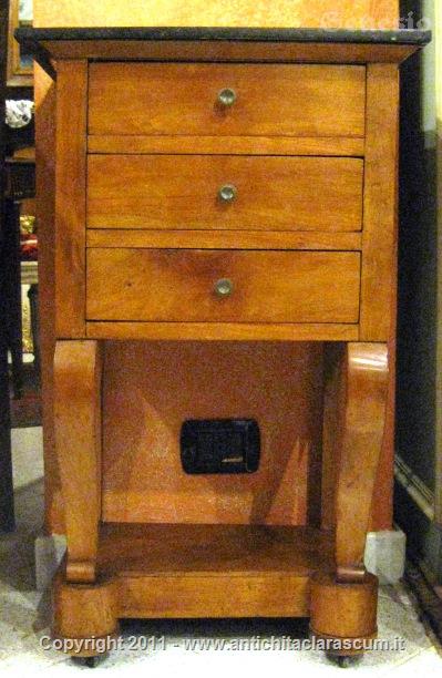 Descrizione:Tavolino in noce con piano in marmo con colonne a bretella