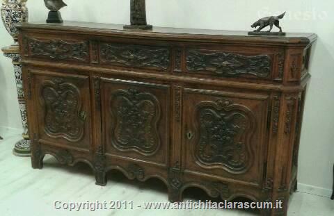 Descrizione:Credenza in noce a tre porte scolpita
