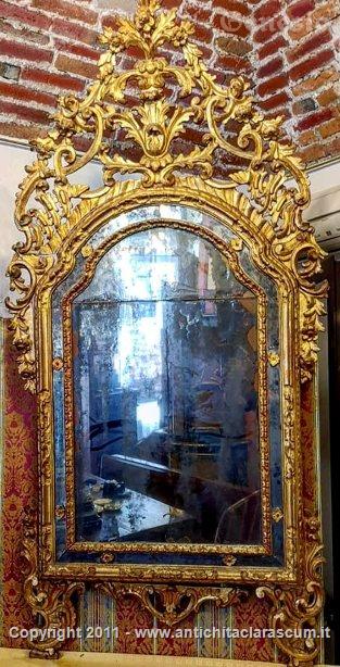 Descrizione:Specchiera intagliata e dorata con vetri al "mercurio". Piemonte, prima meta' del 1.700