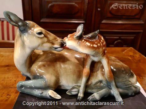 Ceramica Lenci raffigurante una femmina di cerbiatto con il piccolo, titolo dell'opera "Cerbiatti".