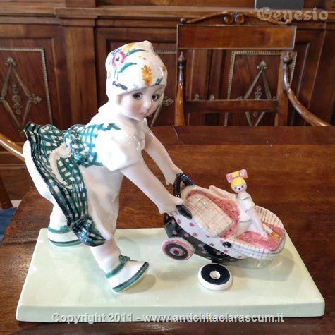 Descrizione:Ceramica Essevi dal titolo "Bambinaia". Formatura a colaggio e dipinta a mano e all'aerografo. Torino, 1940